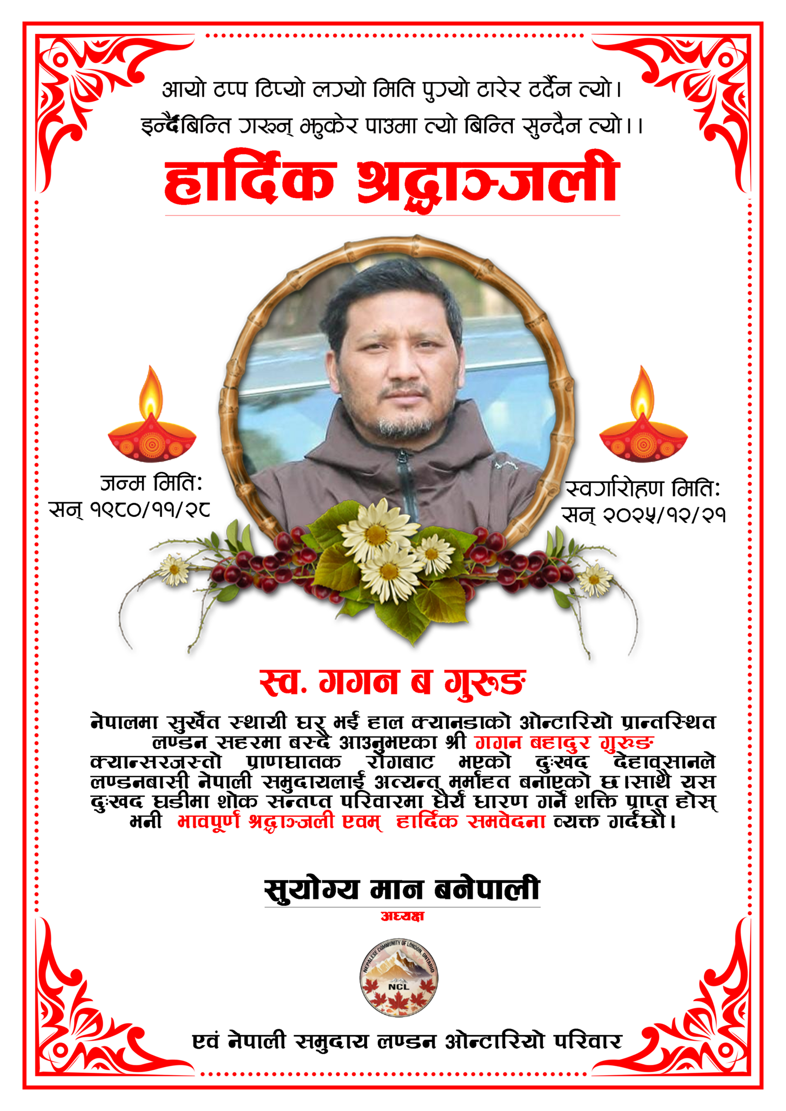 With heavy hearts, we are sharing this GoFundMe to support the family of Late Mr. Gagan Bahadur Gurung, who sadly passed away on December 21, 2025, after a short illness.